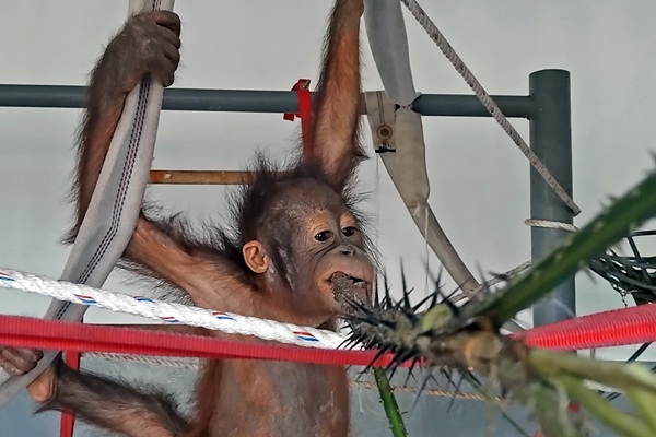 At just 18 months old, Felix is the youngest orangutan at Jungle School. His gentle, easily worried nature makes him especially endearing.