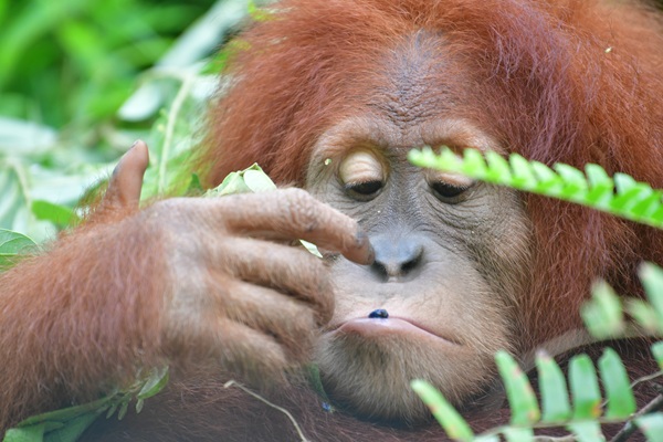 Meanwhile, six-year-old Asih remains the cheeky spark of the pair! While Asto rules the canopy, Asih loves the forest floor—playing with leaves and sticks, making ground nests, and constantly dreaming up clever new escape plans. Whether she’s testing the electric fence or exploring the drainage ditch, her creativity knows no bounds. She’s healthy, playful, and full of curiosity, though she still shows a little fear of certain keepers.